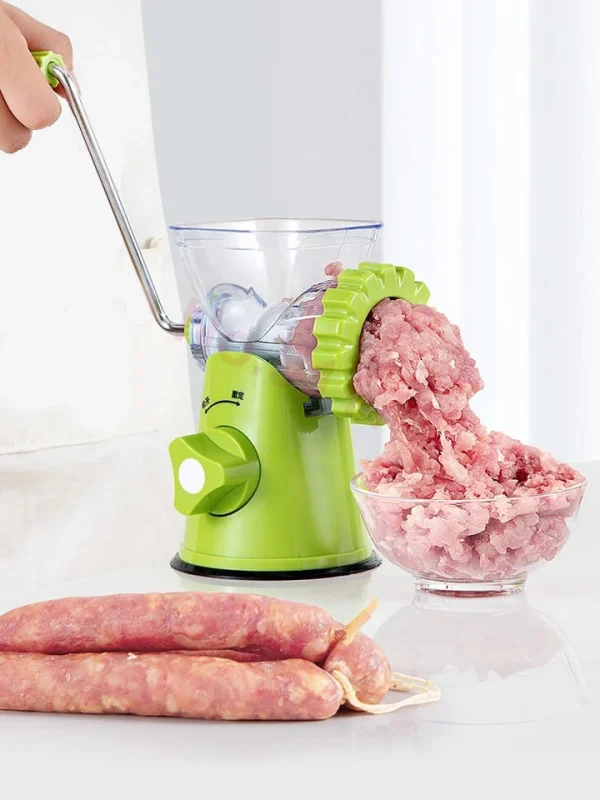 - The ergonomic hand crank design of this manual sausage machine allows for effortless grinding, giving you full control over the texture and consistency of your ground meat.